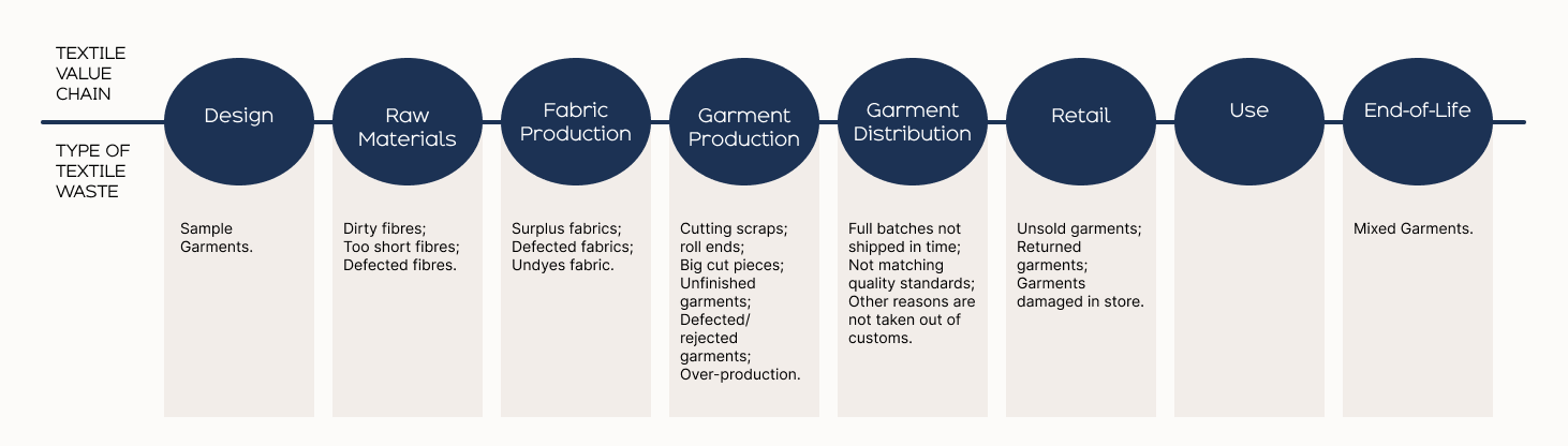 When fabric is produced, waste is generated from surplus fabric, faulty fabric and defective fibres. 1.44 million tonnes is waste is generated every year at at this stage.