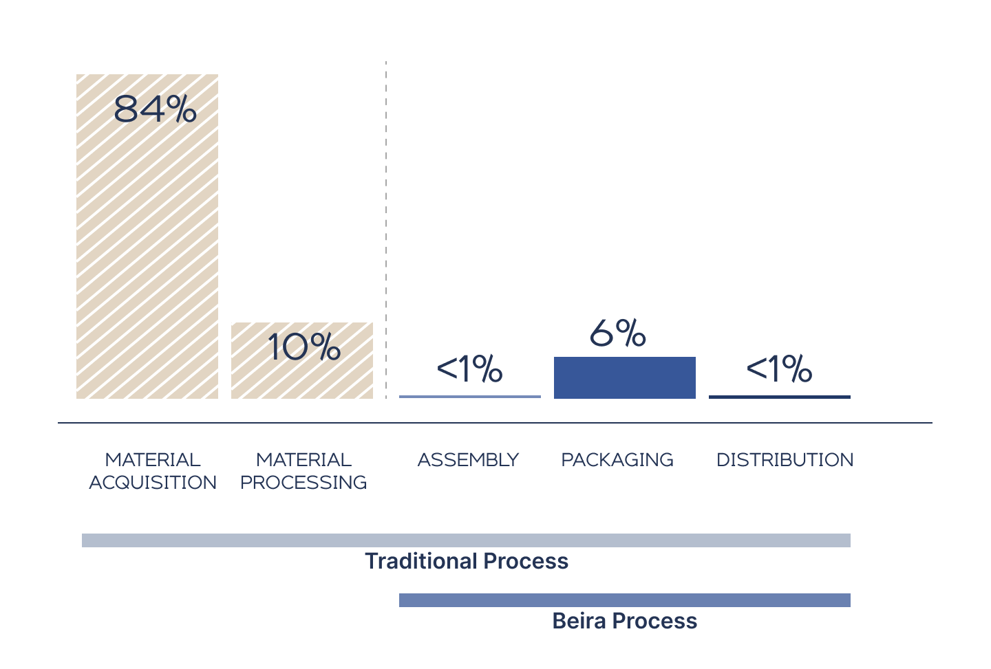 Beira sourced discarded fabric from La Rocca, which had been used in the production of high-end luxury garments, to create the knitted hat. Our 'No New Materials' commitment and embracing a circular economy have enabled us to limit the volume of substandard, mass-produced fabric discarded in landfills and produce more robust and resilient items instead.