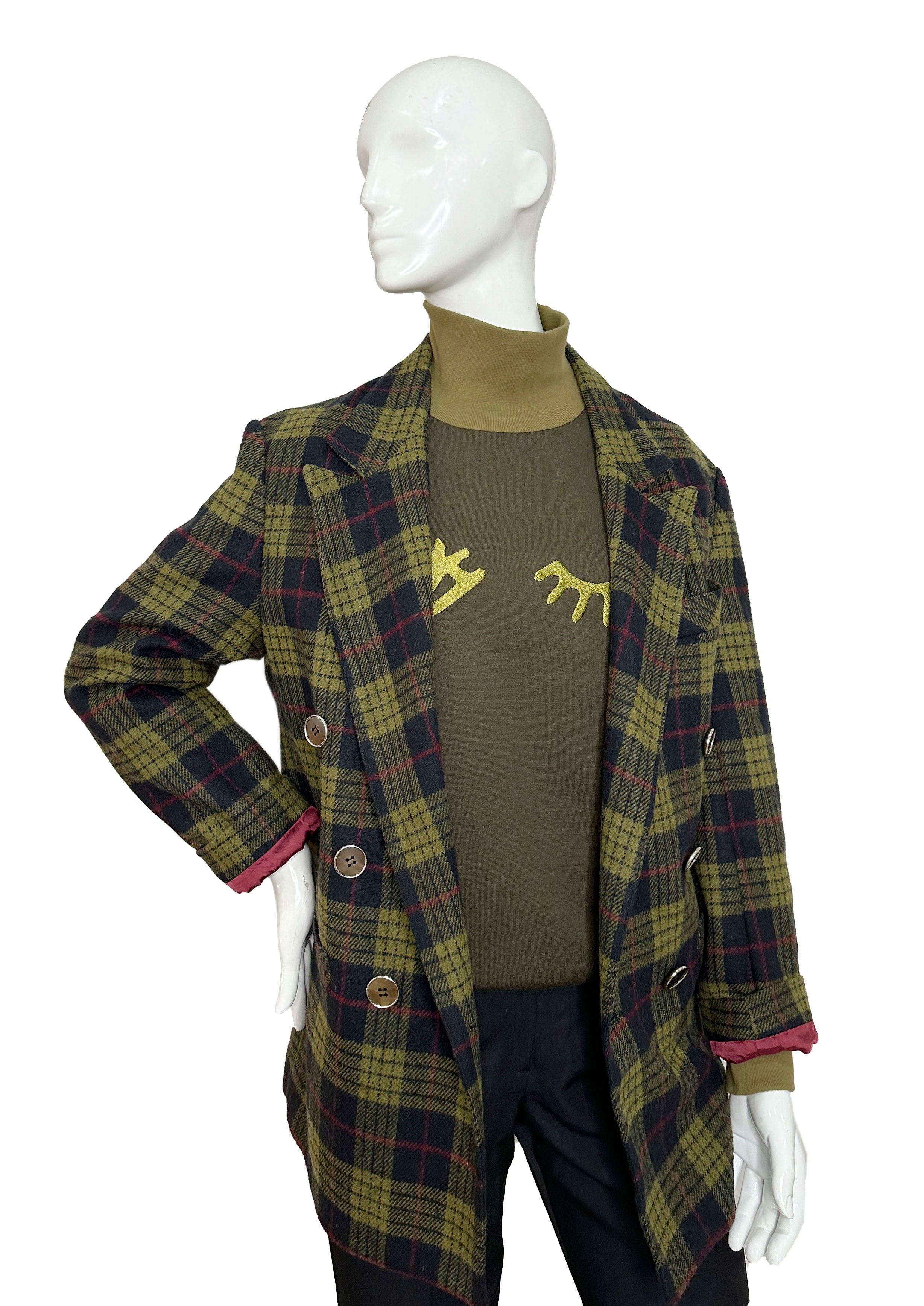 Manufactured in Italy and sustainably sourced from ‘discarded’ fabric from the luxury fashion industry. The factory is entirely powered by renewables and we further cut down on carbon emissions due to our waste shipping protocol. Our circular sourcing strategy provides 85% approx. reduction in the CO2 impact compared to traditional sourcing methods.