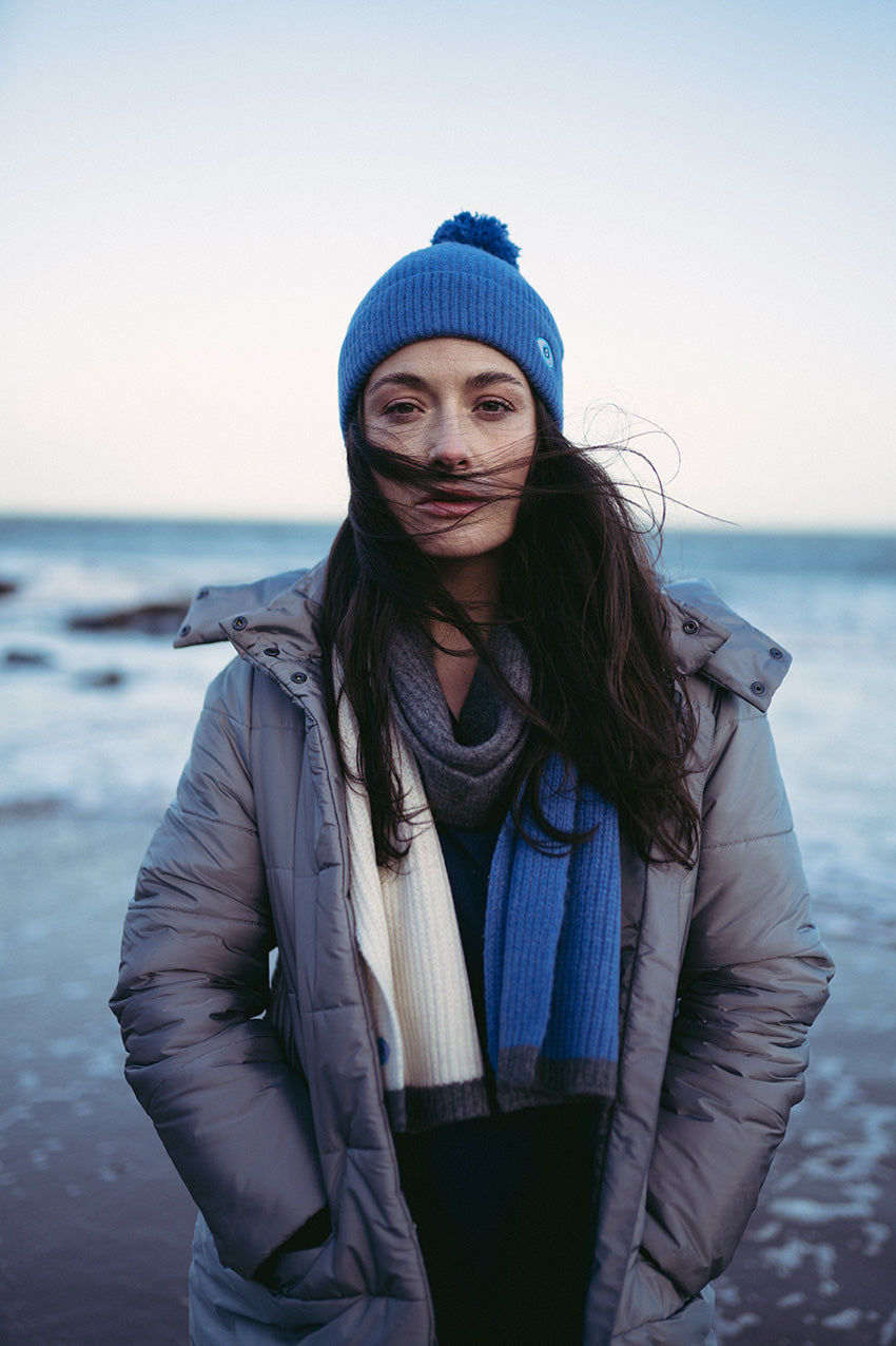 As a graduate of Glasgow School of Art's renowned knitwear program, Antoinette adores beautiful knitwear. To create our bobble hat, we worked with the factory to identify discarded yarns of the highest quality. This bobble hat adds a touch of effortless glamour to any look. Thanks to our collaboration with the factory, we have achieved the stunning bobble hat.
