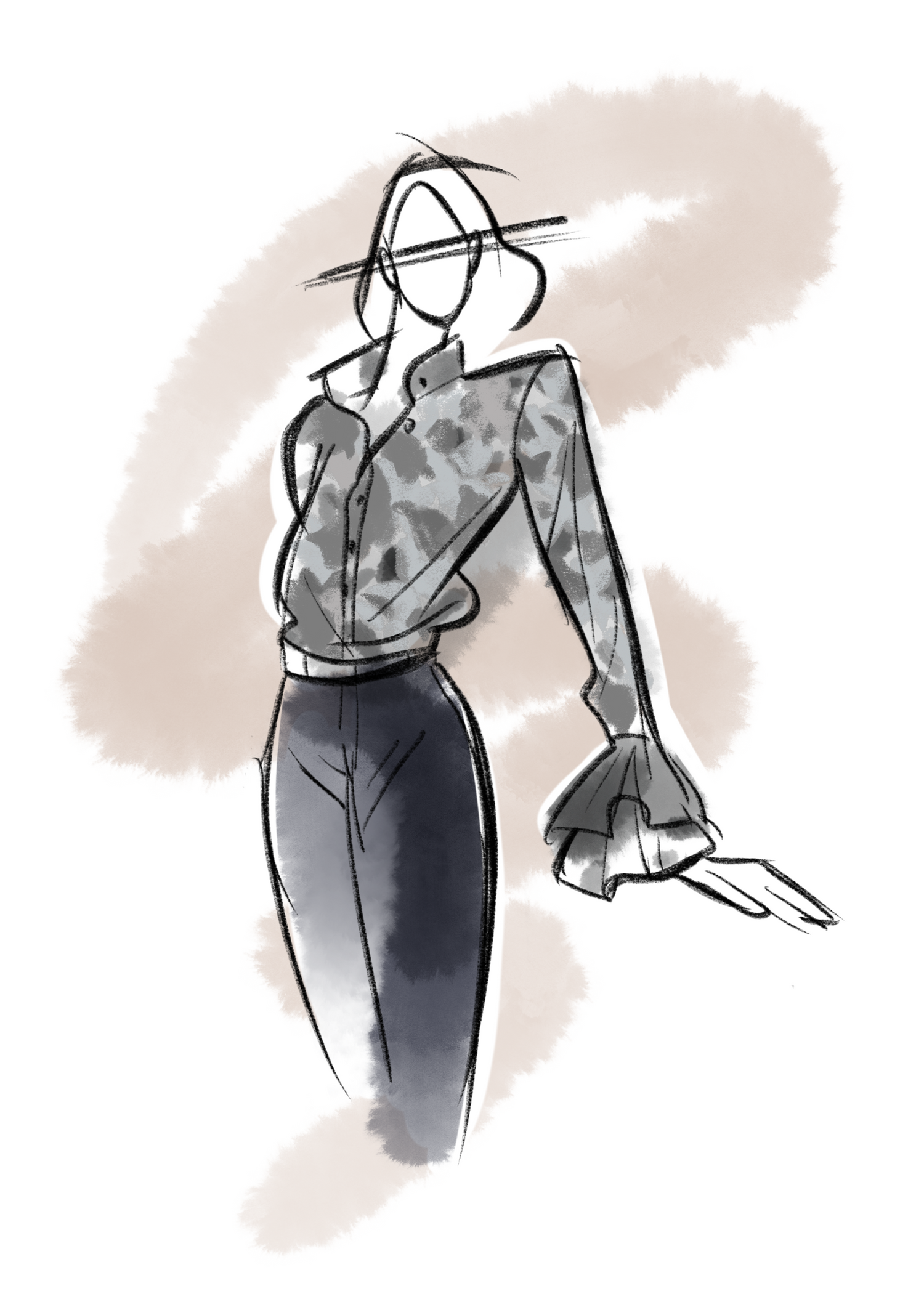 The Emma Shirt features a semi-sheer floral/black fabric with delicate trims and elegant details, making it a versatile addition to your year-round wardrobe. It boasts a dramatic frilled oversized cuffs, lantern sleeves and a button collar, adding a touch of sophistication to any outfit.