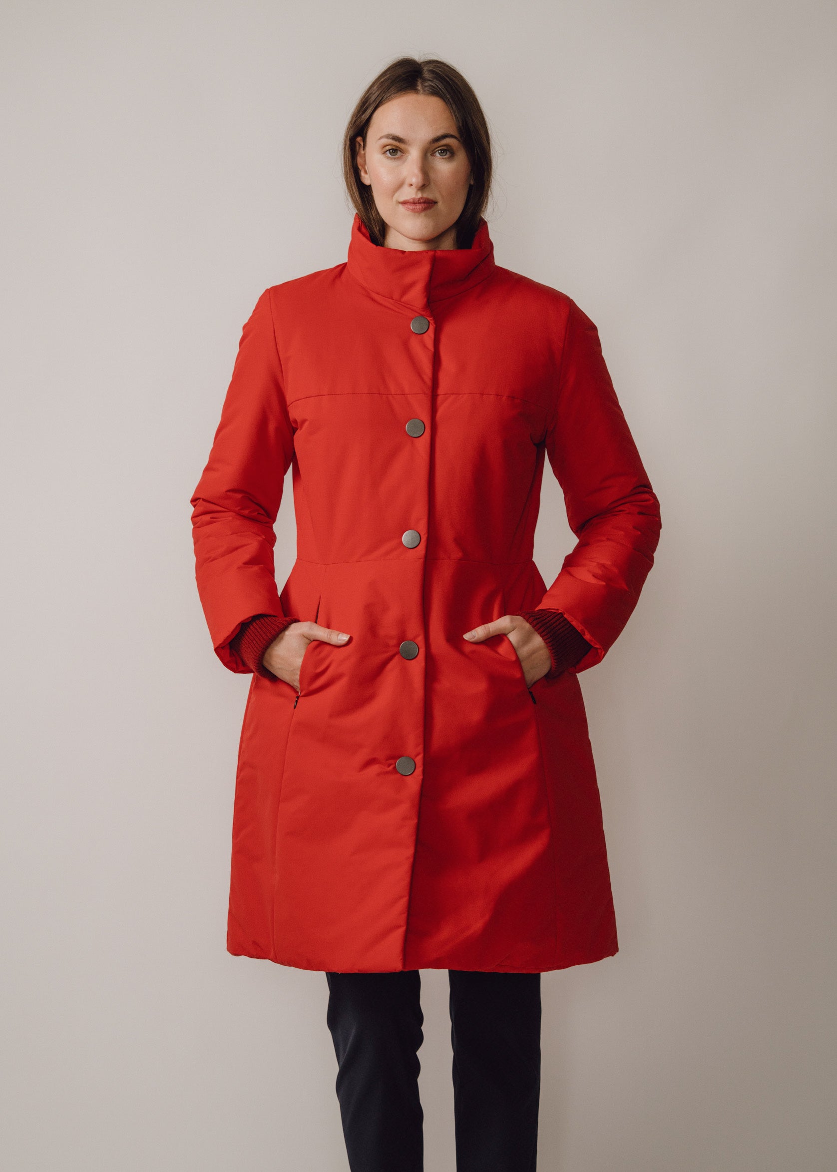 The Grace raincoat exudes subtle luxury. With cosy quilting and a tailored waist, it offers a strong, flattering silhouette.