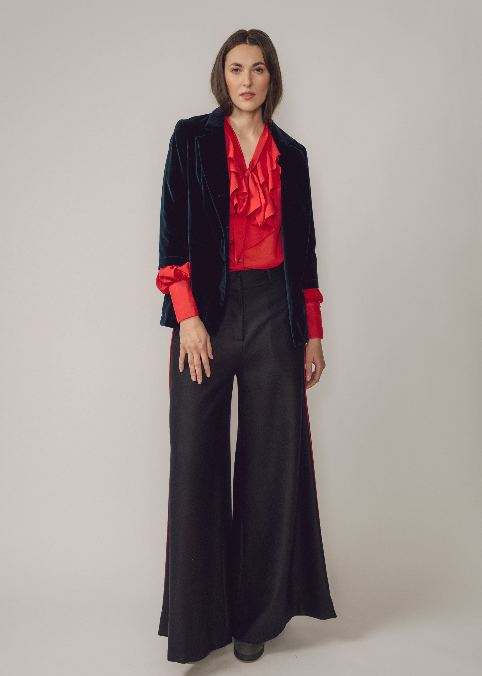 Meticulous tailoring and lantern sleeves create the perfect silhouette for any blouse.