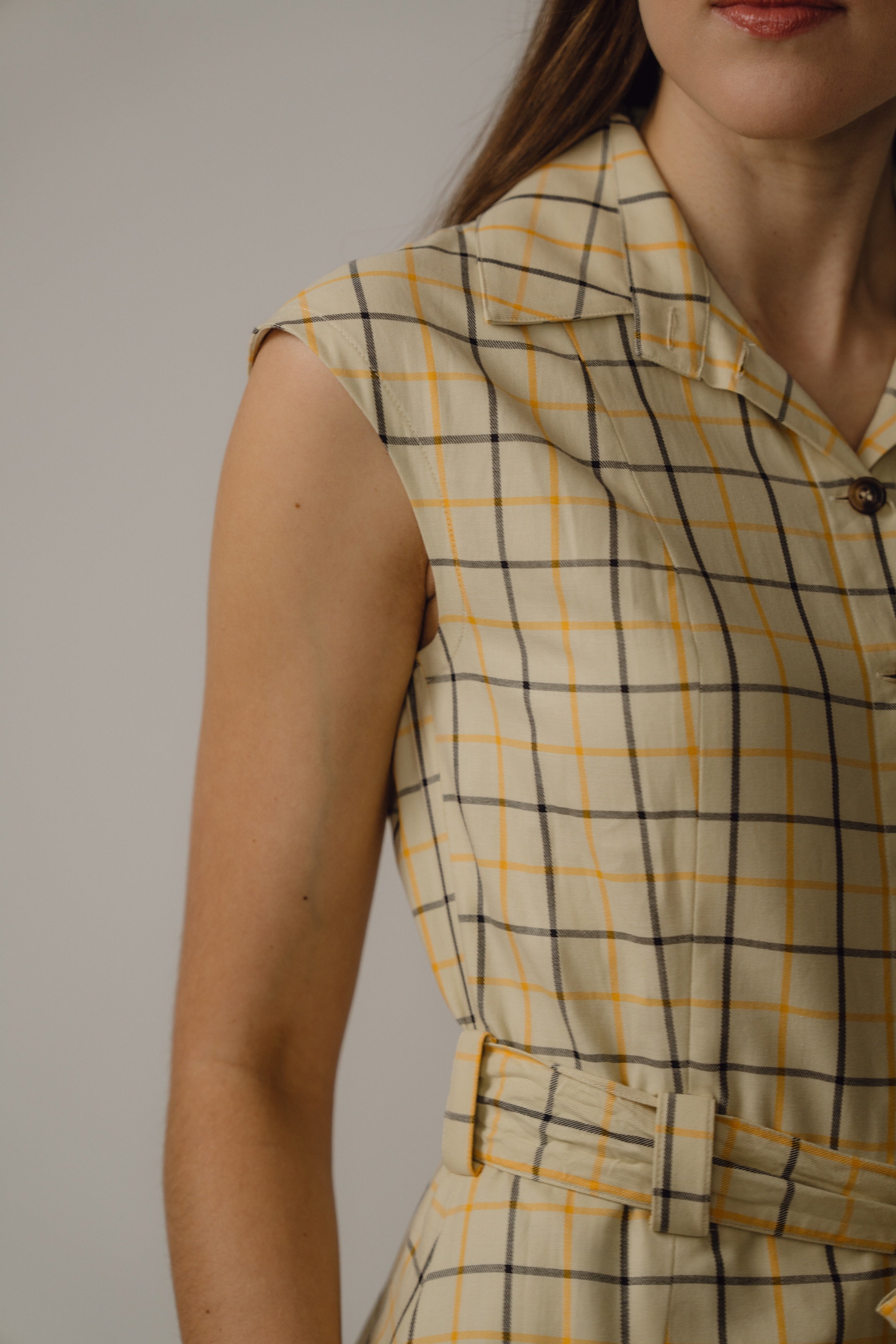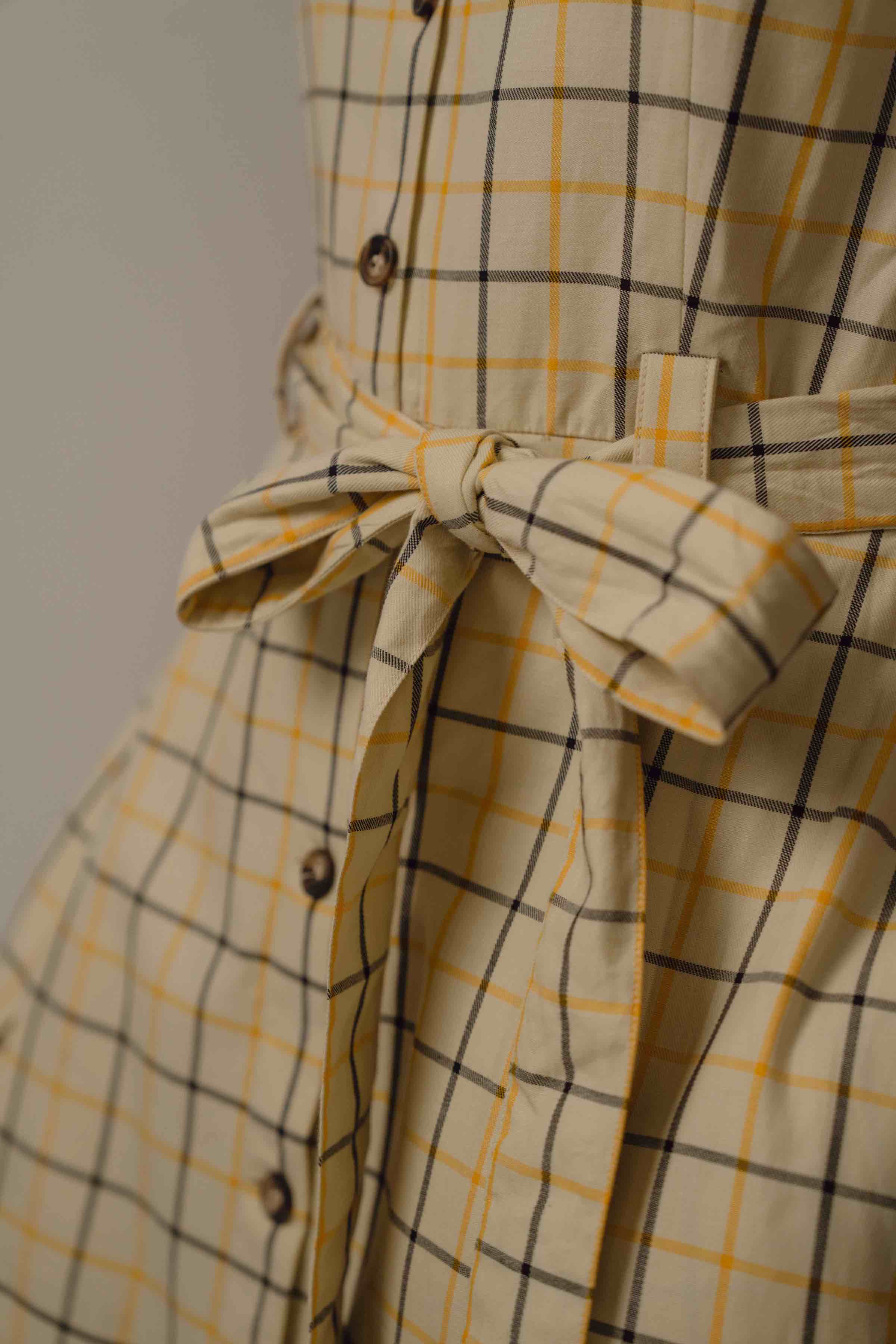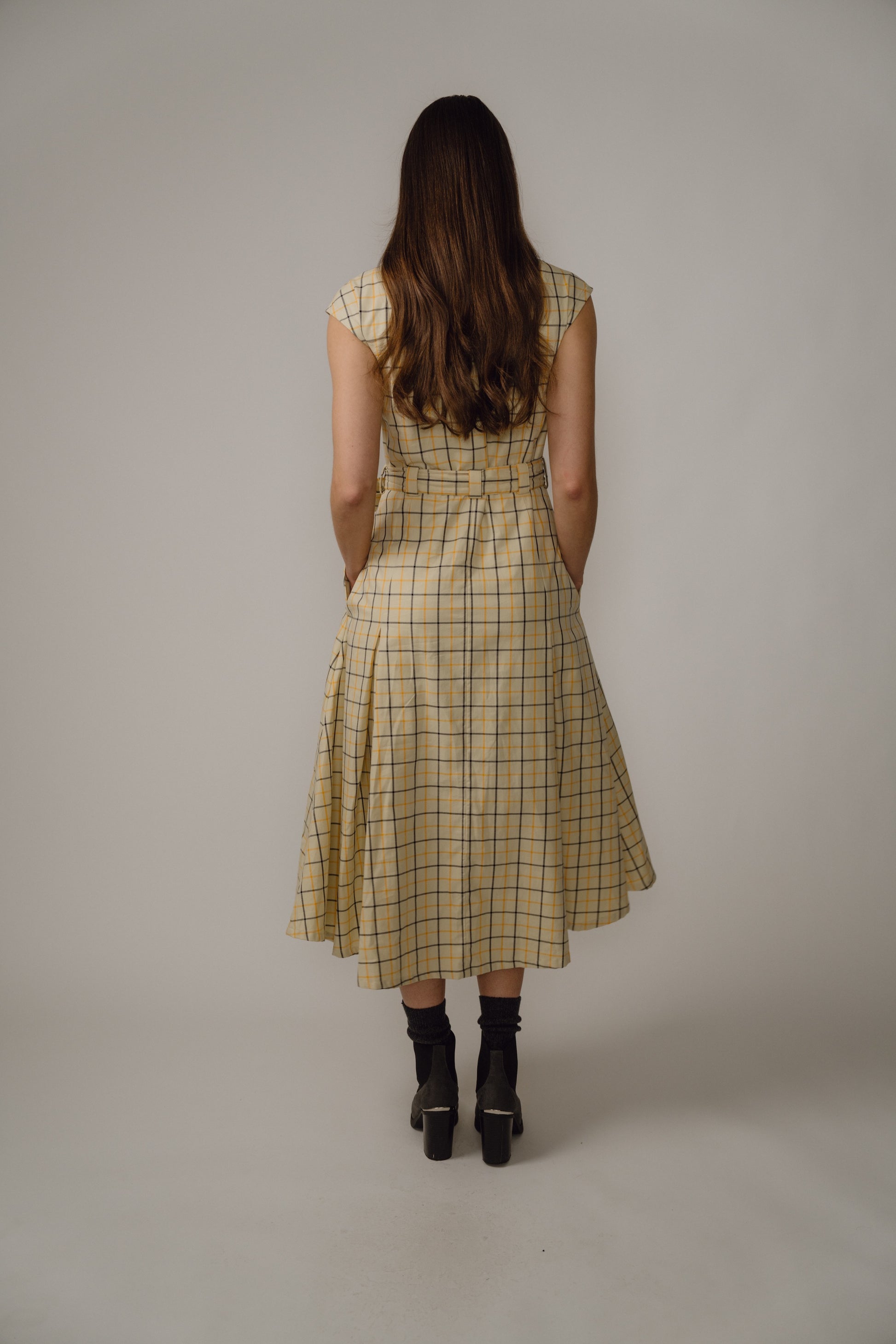 This gracefully fantastic shirt dress with pockets, (yes pockets - we love a pocket!) has stunning inverted pleats (two and front and two at back, button fronts, tie belt and elegant just off the shoulder sleeve. it has a beautifully fitted waist. A classic style with contemporary details this dress can be worn by itself or layered over a shirt or worn open as a waistcoat.