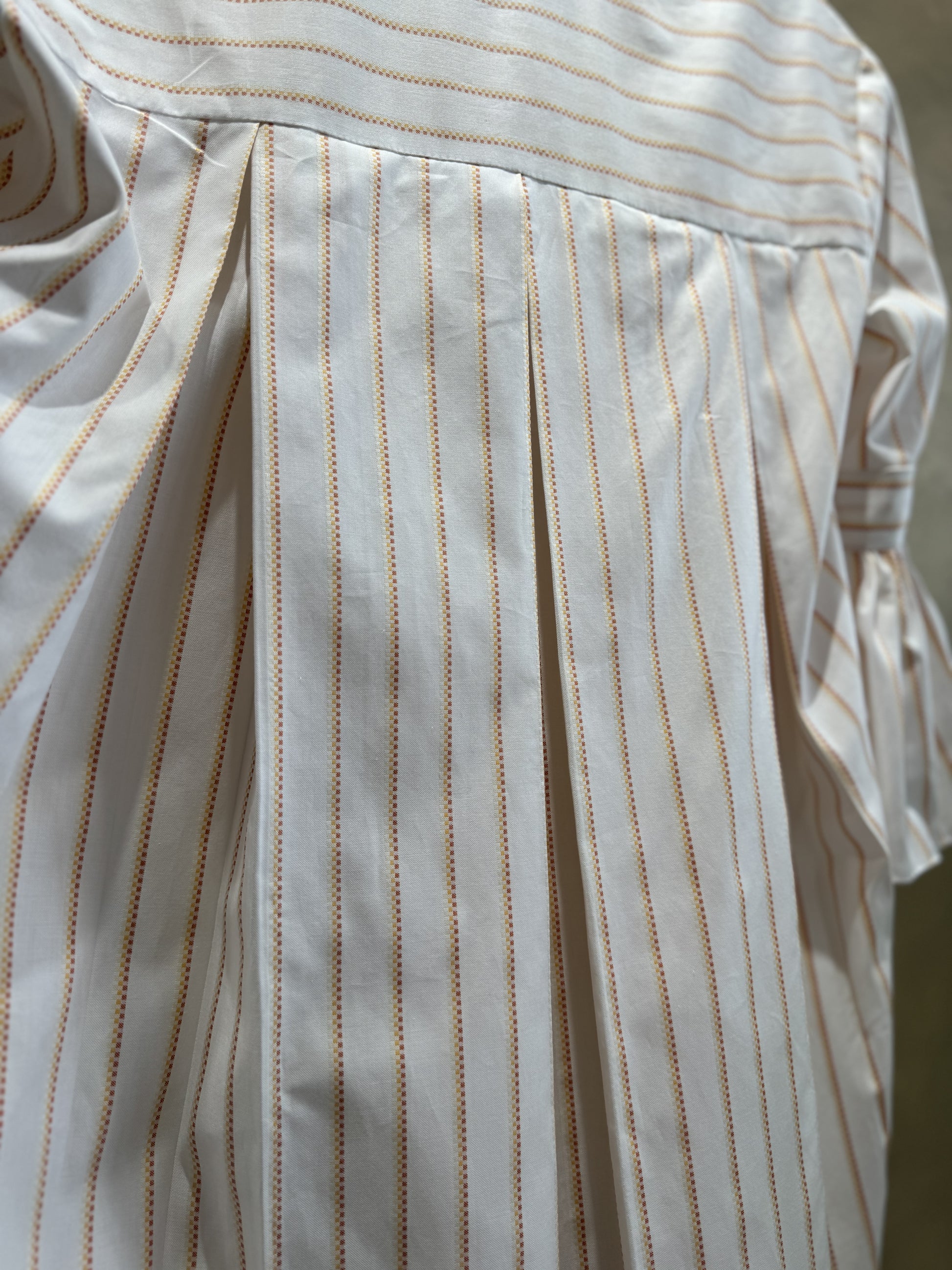 Introducing our beautiful Summer Shirt Dress, a symbol of enduring elegance and comfort, meticulously crafted in Scotland for those who appreciate quality apparel. This exquisite dress, available in white cotton with a peach stripe, is super flattering and easy to wear, featuring a pleated back and a dipped hem for added charm. Pockets add both practicality and style, making it ideal for radiant summer days, whether you're attending garden parties, casual brunches, or enjoying leisurely strolls. Secure your piece by pre-ordering now and joining the waitlist for this limited-edition creation, as demand is expected to be high. Don't miss the chance to elevate your summer wardrobe with this exclusive blend of fashion and functionality – place this stunning dress in your basket today and embrace the season with confidence and style.